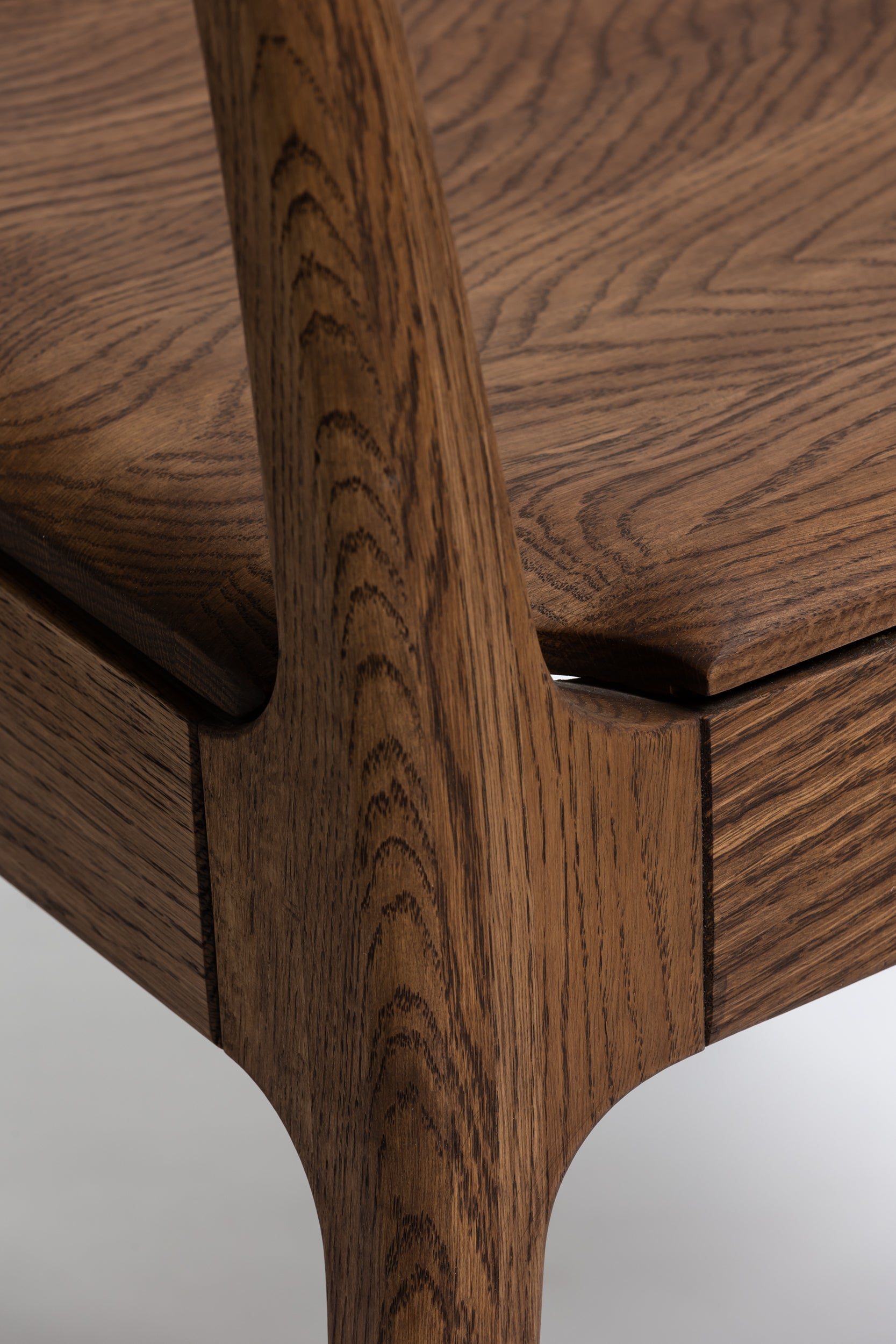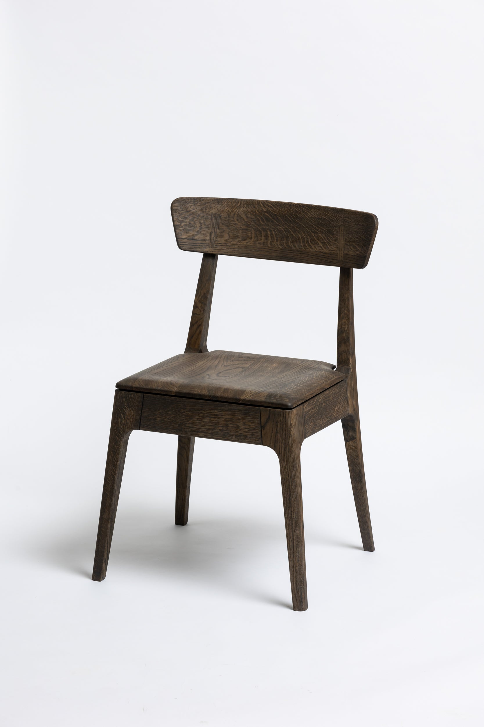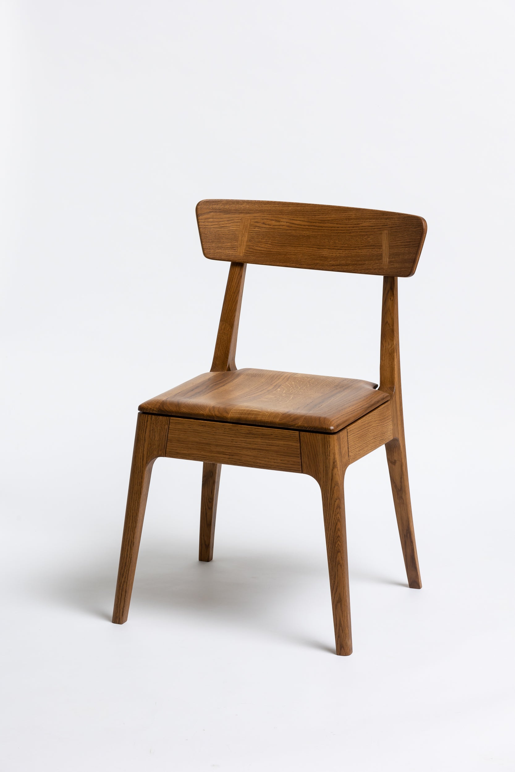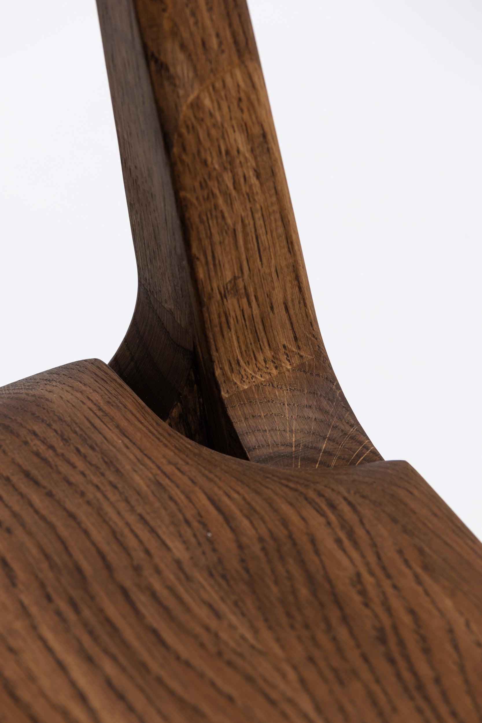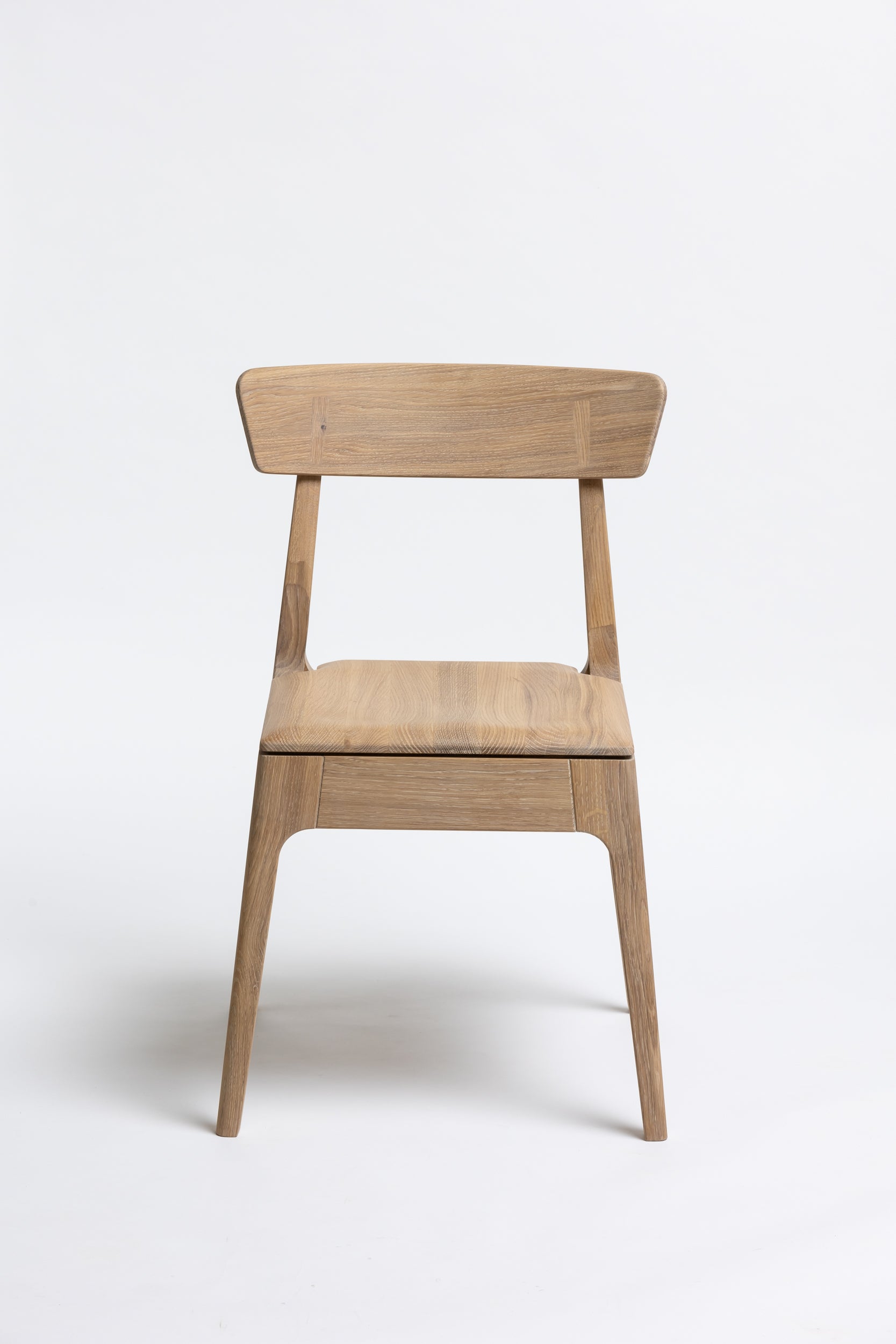 Die sanft geschwungene Rückenlehne bietet angenehmen Halt, während die geformte Sitzfläche aus Massivholz sich der Körperform anpasst. Schlanke, leicht zulaufende Beine verleihen dem Stuhl eine leichte, elegante Silhouette und machen ihn einfach mit modernen wie klassischen Einrichtungen kombinierbar. Die Oberfläche ist mit Rubio Monocoat 2C-Öl veredelt, das sie im Alltag zuverlässig schützt und trotzdem die natürliche Haptik des Holzes bewahrt.