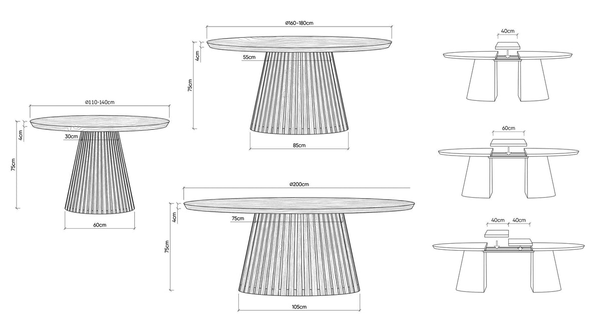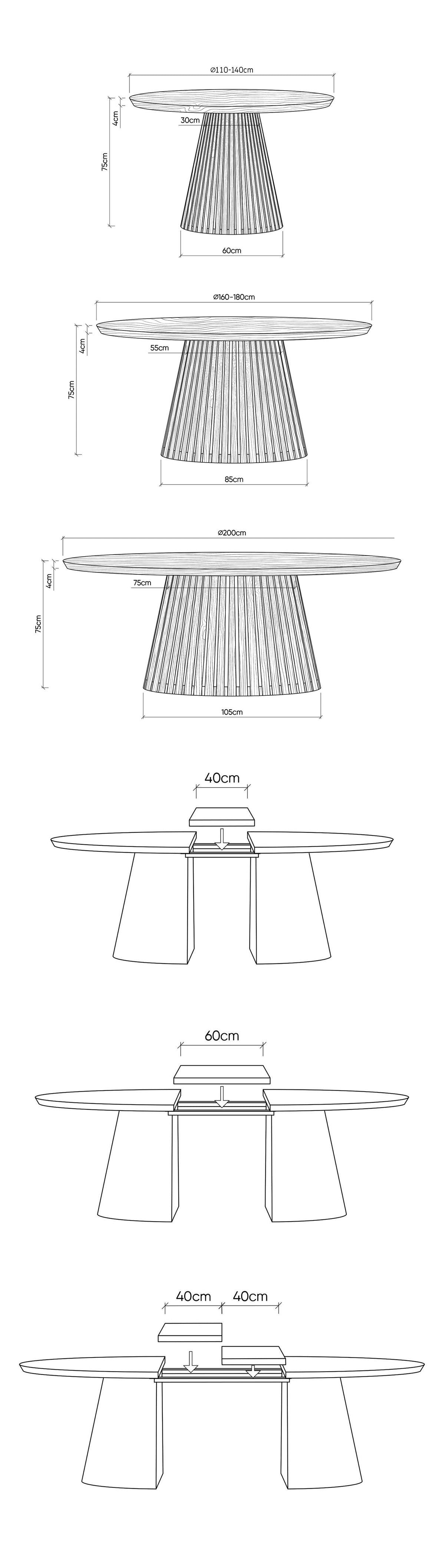 Extension leaves are designed for easy use and a clean look. Most store separately; select models store extensions internally.
